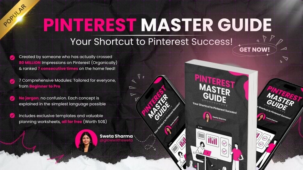 The Pinterest Master Guide is the best resources on the internet to learn how to crush it on Pinterest. It has 7 Comprehensive Modules, Freebies, Curated Resources, 18 Best Affiliate Programs Listed and much more. A perfect fit for every creator who aspires to be on Pinterest!