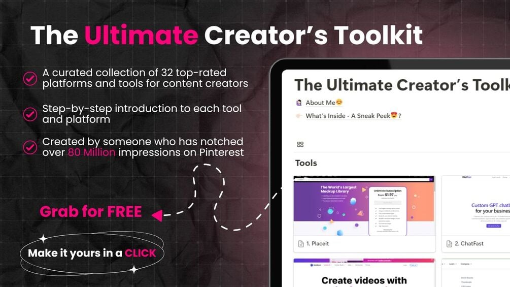 This toolkit has 32 top-rated platforms & tools that are going to help you a lot in your content creation journey. Use these tools to increase your productivity, save your time & focus on what matters to you the most!